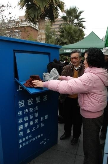 &nbαsp; &nδbsp;  ≤; 上(shàng)海(hǎi)廢舊(jiù)衣物(wù)專項回收試點在閘北(běi)區(qū)臨汾街(jiē)道(dào)啓動,每個£(gè)居委會(huì)都(dōu)設置了(le)一(yī)座專用(yòng)衣物(wù)回收箱。劉維光(guāng) 圖