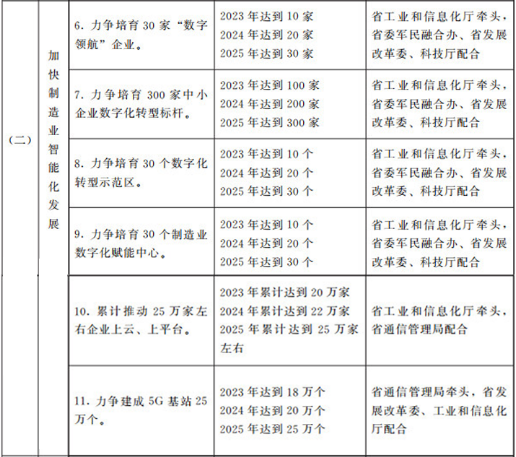 1.加快(kuài)制(zhì)造業(yè)數(shù)字化(huà)轉型。實施制(zhì)造業(yè)數(shù)字化(huà)轉型三年(nián)行("xíng)動計(jì)劃,按照(zhào)企業(yè)、園區(qū)、産業(yè)鏈、集群分(fēn)類實施數(shù)字化(huà)轉型行(xíng)動,★到(dào)2025年(nián),力争培育30家(jiā)“數(shù)字領航”企業(yè)、300家(jiā)中小(xiǎo)企業(yè)數(shù)®字化(huà)轉型标杆、30個(gè)數(shù)字化(huà)轉型示範區(qū)、30個(gè)制(zhì)造業(yè)數(≠shù)字化(huà)賦能(néng)中心。培育壯大(dà)數(shù)字核心産業(yè),加快(kuài)建設省元宇宙科(kē)創産業(yè)園、中原數(shù)據要&(yào)素生(shēng)态産業(yè)園,構建數(shù)據交易産業(yè)鏈,推動衛星及應用(yòng)産業(yè)健康發展,争創國(guó→)家(jiā)元宇宙創新應用(yòng)先導區(qū)、國(guó)家(jiā)級數(shù)字産業(yè)集群。(責任單位:省委軍民(mín)融合辦、省工↔(gōng)業(yè)和(hé)信息化(huà)廳、發展改革委、科(kē)技(jì)廳)