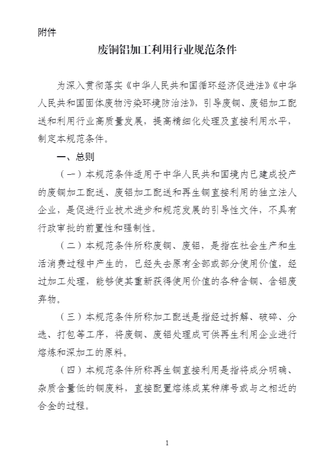 附件(jiàn):廢銅鋁加工(gōng)利用(yòng)行(xíng)業(yè)規範條件(jiàn)
