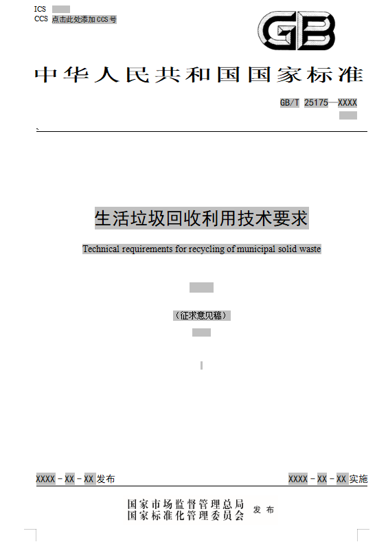 附件(jiàn):《生(shēng)活垃圾回收利用(yòng)技(jì)術(shù)要(yào)求》(征求意見(jiàn)稿)