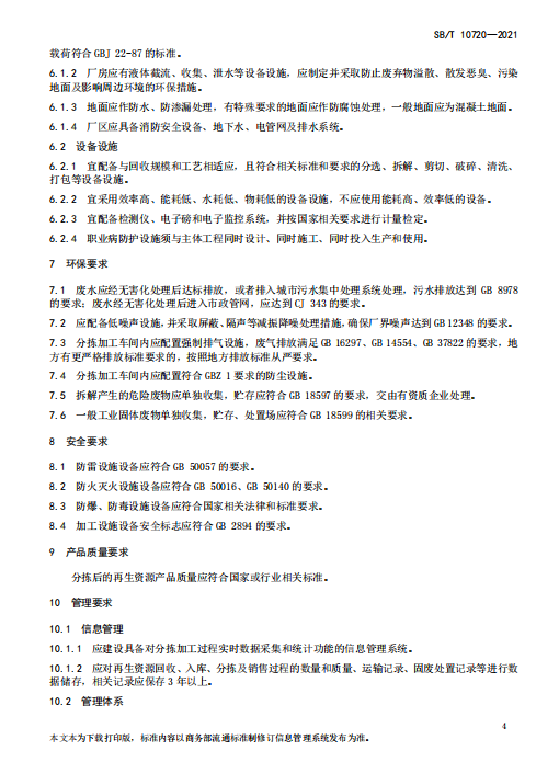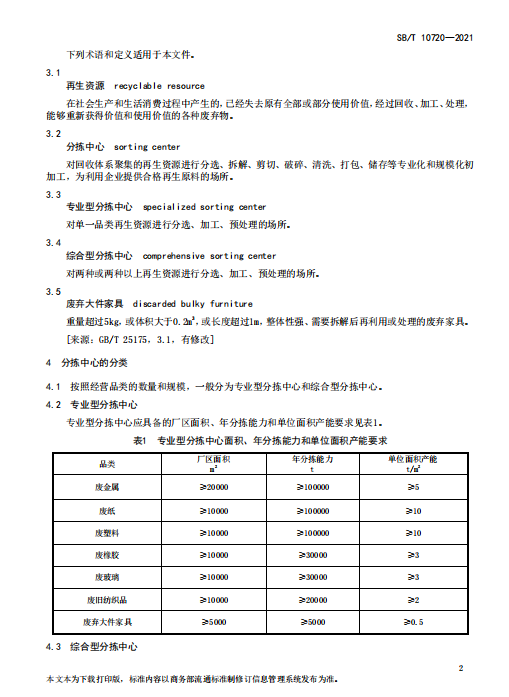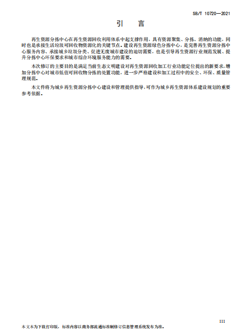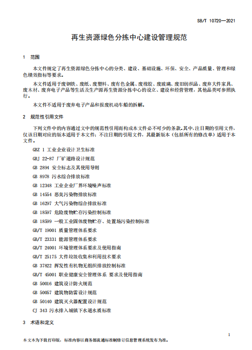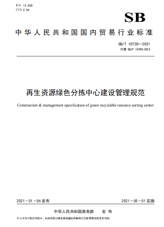 行(xíng)業(yè)标準/再生(shēng)資源綠(lǜ)色分(fēn)揀中心建設管理(lǐ)規範