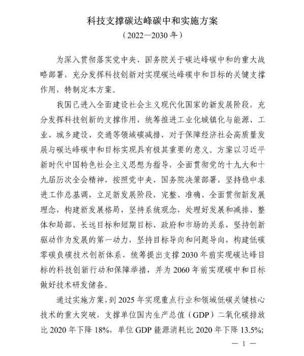 為(wèi)深入貫徹落實黨中央、國(guó)務院關于碳達峰碳中和(hé)的(de)重大(dà)戰略決策,做(zuò)好(hǎo)科(kē)技(jì)支撐碳達峰碳中和(hé)相(xi↓àng)關工(gōng)作(zuò),依據《中共中央 國(guó)務院關于完整準确全面貫徹新發展理(lǐ)念做(zuòπ)好(hǎo)碳達峰碳中和(hé)工(gōng)作(zuò)的(de)意見(jiàn)》《2030年(ni×án)前碳達峰行(xíng)動方案》,結合碳達峰碳中和(hé)領域科(kē)技(jì)創新工(gōng)作(zuò)新形勢新情況,科(kē)技(jì)部、國(guó)家(↔jiā)發展改革委、工(gōng)業(yè)和(hé)信息化(huà)部、生(shēng)态環境部、住房(fáng)城(chéng)鄉(xiāng)建設部、交通(tōng)運輸部、中科(k∑ē)院、工(gōng)程院、國(guó)家(jiā)能(néng)源局共同研究制(zhì)定了(le)《科(kē)技(jì)支撐碳達峰碳中和(hé)實施方案(2022—2030年(nián))》。現(xiàn)印發給你(nǐ)們,請(qǐng)遵照(zhào)執行(xíng)。
