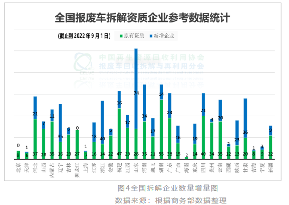 在以上(shàng)利好(hǎo)消息的(de)刺激下(xià),從(cóng)2018年(nián)開(kāi)始,報(bεào)廢車(chē)拆解企業(yè)數(shù)量迎來(lái)了(le)高(gāo)速增長(cháng),同時(shí)市(shì)場(chǎn₽g)處于新老(lǎo)政策的(de)調整和(hé)适應期,2019年(nián)底,我國(guó)報(bào)廢機(jī)動 車(chē)回收拆解企業(yè)共755家(jiā),回收網點約2271個(gè),從(cóng)業(yè)人(≤rén)員(yuán)約2.4萬人(rén);截至2022年(nián)底,我國(guó)報(bào)廢機(j•ī)動車(chē)回收拆解資質企業(yè)已經增加到(dào)1412家(jiā),比2021年(nián)增加了(le)483家(jiā),增幅↔明(míng)顯,現(xiàn)在市(shì)場(chǎng)仍處于快(kuài)速變化(huà)中,仍有(yǒu)企業(yè)不(bù)斷申請(qǐn←g)進行(xíng),也(yě)有(yǒu)企業(yè)陸續退出。