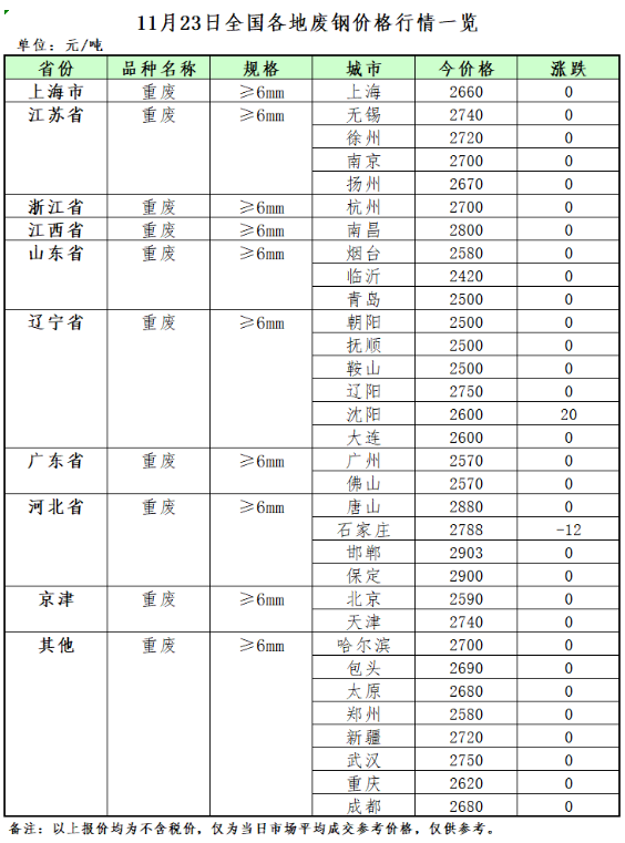 今日(rì)中國(guó)再生(shēng)資源廢鋼價格指數(shù)為(wèi)2726元/噸,與上(shàng)&一(yī)個(gè)工(gōng)作(zuò)日(rì)下(xià)跌2元/噸。今主流市(shì)場(chǎng)整體(tǐ)個(gè)别下(xià)調。鋼 企到(dào)貨較昨日(rì)略有(yǒu)減少(shǎo),所調研21一(yī)家(jiā)樣本鋼企到(dào)貨量為(wèi)9.14萬噸,較上£(shàng)一(yī)工(gōng)作(zuò)日(rì)減少(shǎo)0.67萬噸。期貨高(gāo)位回落,市(shì)場(chǎng)心态轉弱,貿♦易商出貨操作(zuò)有(yǒu)所增加。鋼企方面到(dào)貨量有(yǒu)所提升。預計(jì)短(duǎn)期河(hé)北(běi)市(shì)場✘(chǎng)或穩中整理(lǐ)。