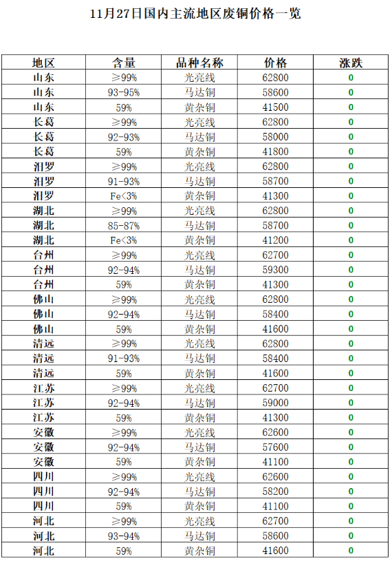 廢銅:今日(rì)中國(guó)再生(shēng)資源廢銅價格指數(shù)62771元/噸,較昨日(rì)持平。11月(yuè)27日(rì),國(guó)內≥(nèi)現(xiàn)貨銅成交區(qū)間(jiān)68820-68890元/噸,較上(shàng)一(yī)交易日(rì)價漲175元/噸,持貨商升貼水(shuǐ)對(duì)12合約b550-b620,升水(shuǐ)均值較上(shàng)一(yī)交易日(rì)漲65元/噸。上(shàng)午北&(běi)方臨沂、保定和(hé)佛山(shān)貨場(chǎng)廢銅最高(gāo)報(bào)價清光(guāng)-合股采購(gòu)價在63100-6320&0元/噸,午間(jiān)盤中價格持平。電(diàn)解銅庫存偏低(dī)供應緊張,升水(shuǐ)繼續走強,廢銅現(xiàn)貨流量有(yǒu)所增加,精廢價差走闊志'(zhì)1964元/噸,落于合理(lǐ)線上(shàng)方,再生(shēng)替代性增強。成交方面河(hé)南(nán)、湖(hú)北(běi)、江蘇和(hé)江西(xī)等∑企業(yè)均有(yǒu)停滿下(xià)調價格情況,表明(míng)日(rì)內(nèi)廢銅市(shì)場(chǎng)成交活 躍,原料供應充足;下(xià)遊再生(shēng)銅杆需求弱于供應端,特别是(shì)華北(běi)市(shì)場(chǎng)已逐步進入淡季,需求不(bù)及華中≤和(hé)華南(nán)市(shì)場(chǎng)。
