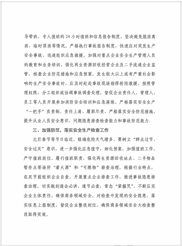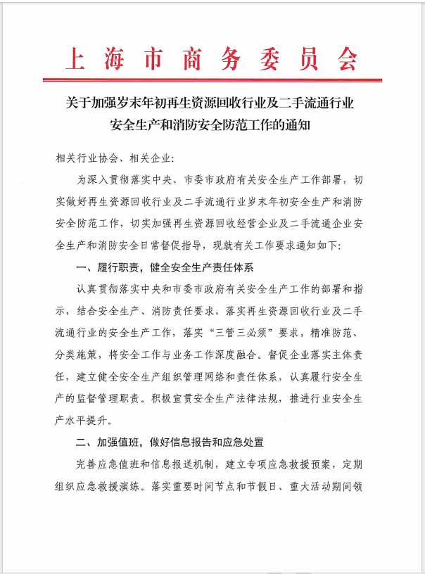 關于加強歲末年(nián)初再生(shēng)資源回收行(xíng)業(yè)及二手流通(tōng)行(x↔íng)業(yè)安全生(shēng)産和(hé)消防安全防範工(gōng)作(zuò)的(de)通(tōng)知(zhī)