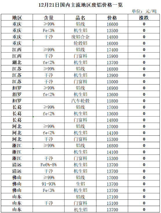 廢鋁:今日(rì)中國(guó)再生(shēng)資源廢鋁價格指數(shù)13747元/噸,較昨日(rì)持平。隔夜倫鋁高(gāo)開(kāi)後震蕩走低(dī),盤終 跌19.5美(měi)元/噸至2245.5美(měi)元/噸。滬鋁夜盤低(dī)開(kāi)後弱勢震蕩,主力跌β35元/噸至18910元/噸,近(jìn)月(yuè)跌20元/噸至18945元/噸。期貨價格窄幅走軟,現(xiàn)貨價格或靈活走低(dī)。廢鋁短(duǎn)缺,÷貿易商到(dào)貨量減少(shǎo)。下(xià)遊再生(shēng)鋁棒廠(chǎng)接單尚可(kě),對(duì)合金(jīn)料型持續補庫。
