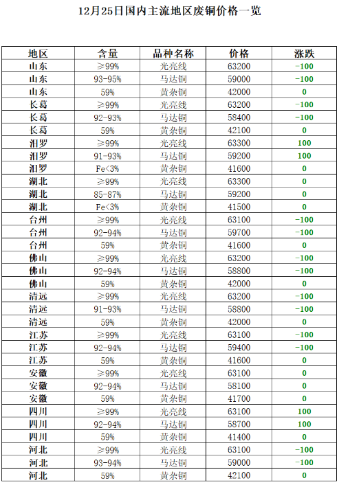 廢銅:今日(rì)中國(guó)再生(shēng)資源廢銅價格指數(shù)63259元/噸,較昨日(rì)上(shàng)漲200元/噸。12 月(yuè)22日(rì),國(guó)內(nèi)現(xiàn)貨銅成交區(qū)間(jiān)69380—69420元/噸,較上(shàng)一(yī)交易ε日(rì)價漲265元/噸,持貨商升貼水(shuǐ)對(duì)2401合約b200-b240,升水(shuǐ)均值較上(shàng)一(yī•)交易日(rì)跌55元/噸。上(shàng)午北(běi)方臨沂、保定和(hé)佛山(shān)貨場(chǎng)廢銅最高(gāo)報(bào)價→清光(guāng)-合股采購(gòu)價在63600-63700元/噸較上(shàng)一(yī)交易日(rì)上(sh✔àng)漲100元/噸,午間(jiān)市(shì)場(chǎng)價格随行(xíng)繼續上(shàng)漲100元</噸。電(diàn)解銅價格過高(gāo)需求抑制(zhì)升水(shuǐ)走弱,廢銅現(xiàn)貨供應尚可(kě),精廢價差2110元/↔噸,替代性偏強。成交方面,由于國(guó)內(nèi)降息和(hé)海(hǎi)外(wài)美(měi)國(guó)經濟增長(ch≤áng)數(shù)據向下(xià)修正,宏觀共振,滬銅繼續走強再度刺破69000元/噸一(yī)線,廢銅持貨商逢高(gāo)積極出貨。下(xià)遊再生(shēng)銅杆廢銅←訂單充足,大(dà)多(duō)數(shù)企業(yè)至少(shǎo)到(dào)貨200噸,但(dàn)是(shì)銅★杆價格過高(gāo)抑制(zhì)需求,因此企業(yè)未敢過多(duō)買入原料,剛需采購(gòu)為(wèi)主。