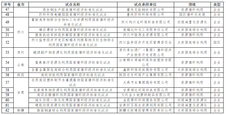1. 國(guó)家(jiā)循環經濟标準化(huà)試點項目表.docx