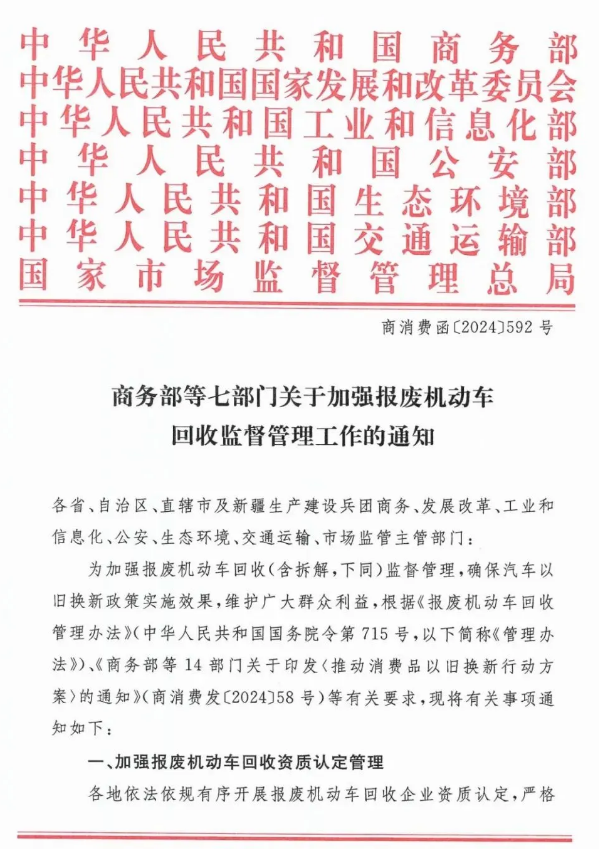 商務部等七部門(mén):關于加強報(bào)廢機(jī)動車(chē)回收監督管理(lǐ)工(gōng)作(zuò)的(de)通(tōng)知(zh♠ī)