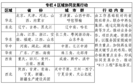 圍繞國(guó)家(jiā)廢舊(jiù)物(wù)資循環利用(yòng)體(tǐ)系建設重點城(chéng)市(shì)、再生(shēng)資源富集地(dì)區(qαū),建立供銷合作(zuò)社再生(shēng)資源回收利用(yòng)網絡體(tǐ)系區(qū)域協同發展機(jī)制(zhì)(見(jiàn)專欄♣4)。按區(qū)域定期交流各地(dì)工(gōng)作(zuò)進展情況,加強市(shì)場(chǎng)趨勢和(hé)行(xíng)業(yè)政策研判,協調推進解決重大(dà)問(w↔èn)題,總結提煉典型經驗,強化(huà)系統間(jiān)統籌協調,加強資源整合和(hé)業(yè)務對(duì)接融合,促進産業(yè)鏈協同,δ切實推動規劃實施。